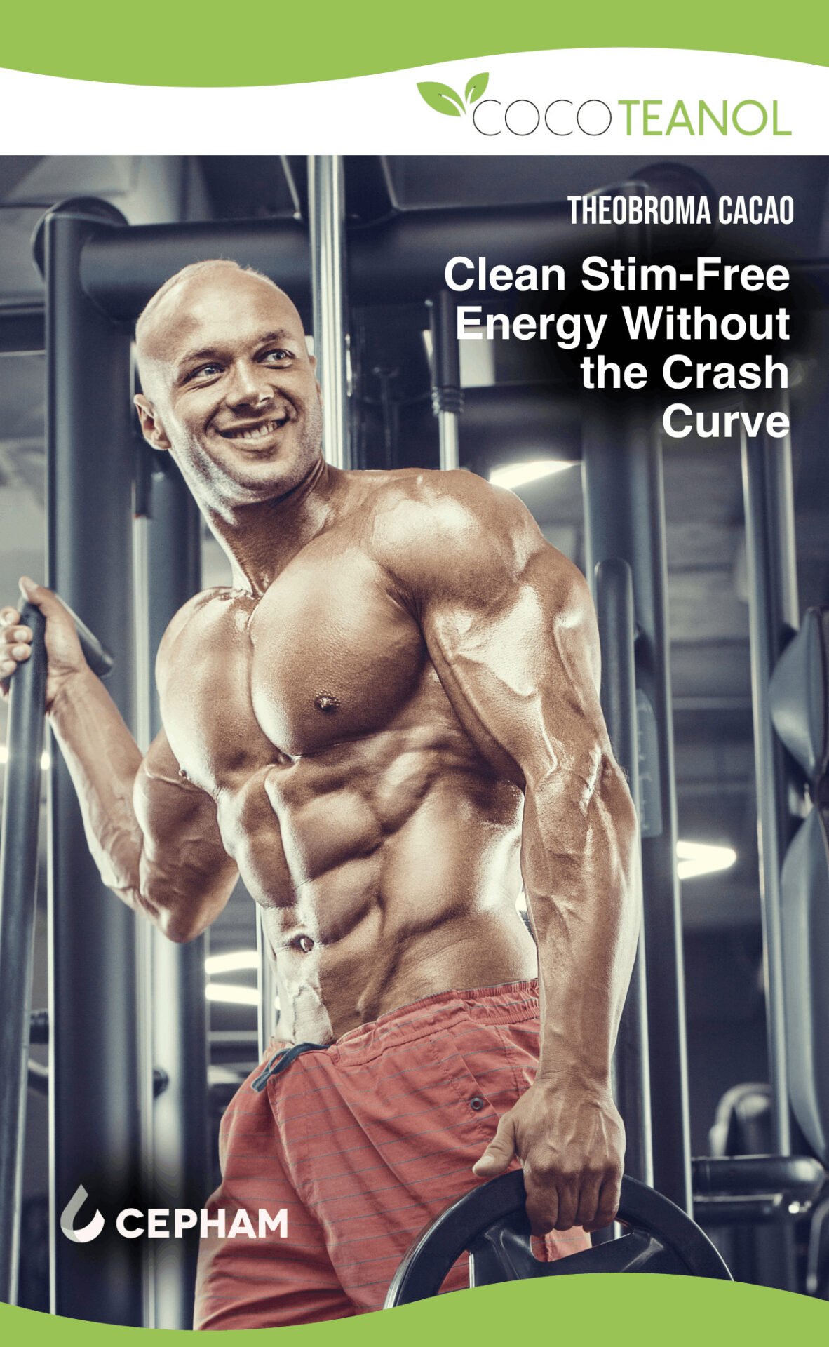 Cocoteanol™ by Cepham is a proprietary cocoa extract standardized for polymeric R-oligomer flavonoids, theobromine, catechins, and epicatechins. Designed as a stimulant-free, caffeine-free (<0.2% natural tea caffeine) solution, Cocoteanol™ offers clean energy support suitable for pre-workout formulations. Its unique flavonoid profile contributes hydrogen-donating and metal-chelating antioxidant properties, supporting nitric oxide–mediated vasodilation, neural stimulation, and exercise recovery. Available in stable, formulation-friendly powder, Cocoteanol™ is ideal for energy, endurance, and sports performance applications requiring caffeine-free innovation.